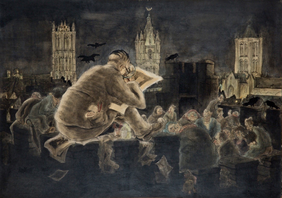 D326 JULES DE BRUYCKER BEKIJKT ZIJN GENT GETEKEND DOOR PAUL EECKHOUT CONSERVATOR VAN M.S.K.G.