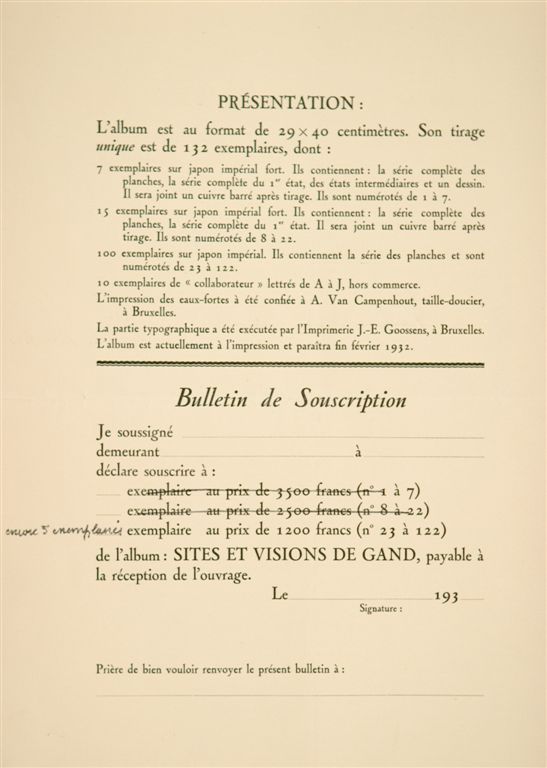 D.134 BESTELBON VOOR ALBUM "SITES ET VISIONS DE GAND"